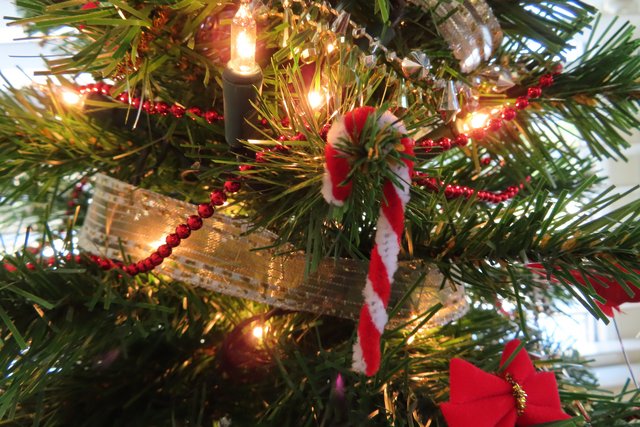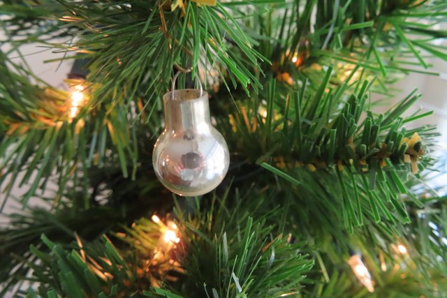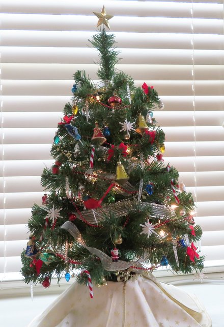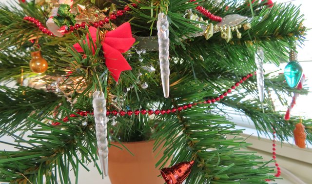 The ornaments don't necessarily look like they go together, but the overall effect reminds me of my human-sized Christmas tree with no particular decorating scheme, so I like it.
