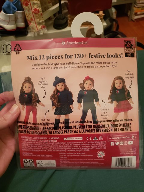 The set includes: An 18-inch doll with brown eyes and dark purple hair in an elegant hairdo, glitter eye shadow, and glossy lips A purple velour leotard with shirred tulle sleeves and decorated with 225 sparkling Swarovski crystals A purple and pink watercolor-printed tutu with a silver elastic waistband A pair of lavender tights A pair of lavender satin ballet shoes A metal tiara decorated with 10 amethyst Swarovski crystals A metal heart-shaped scepter adorned with Swarovski crystals A ribbon necklace with a star pendant A pair of amethyst Swarovski® crystal earrings A numbered collectible Sugar Plum Fairy Card with a story excerpt $250Compiled comments (feel free to add more photos and reviews!): Sorry if I missed this up-thread, but is the Sugar Plum Fairy outfit on the exclusive doll the same as the one they were selling separately? Are there any enhancements? The LE doll has makeup and the outfit includes crystals. Plus she is wearing crystal earrings. I received mine yesterday and she is gorgeous. Her eyes are perfect! So happy about this as this was what I worried most about by ordering a doll online. I did expect perfect eyes when you pay $250 for a doll, but I'm also glad to see expectations were met. Makes me wonder why the CYO's don't always come out better considering how much you are spending over a regular AG doll. But I digress....I was also impressed by the BOX she comes in.....its really think and sturdy. They even left air holes in the corners of the plastic so that when you put the box back on it doesn't cause problems. Overall just very impressed with AG and this doll! Hope they keep doing it along with the nutcracker themed items. I got #146! She is beautiful and the crystals are so shiny I can't believe it. Nothing like rhinestones - totally quality. Some questions I had but didn't see answered: Her ears are pierced and the earrings are not just glued on (they looked like glued on in the pictures) The toe shoes are very nicely made. Vinyl bottoms and sewn like real toe shoes. The ribbons are precisely wrapped around her legs and tied with a lovely bow at the top back (I'm funny - I don't want to untie those bows). The tutu skirt is separate from the velvet leotard. She has a necklace and earrings that do not come with the $65 outfit. The wand and tiara are very heavy and they have crystals too (not just rhinestones like the $65 outfit). The box is gorgeous and they were careful to make it so you could take out the things attaching the doll and it doesn't ruin the sky looking backdrop. I think it will be a great display box/storage box. If someone is willing to pay $200 for a CYO then $250 doesn't seem so bad for a doll in a high quality outfit with storage box. I think you're paying extra for the crystals - they are expensive. Mine just arrived! I’m thrilled with her. The outfit really sparkles. I didn’t like her eyes in pictures, but they’re pretty in person. I like the packaging too - it give you the option to display her in the box if you wanted to keep her NIB. I still haven’t decided if I’ll take her out of the box or not. She’ll only be displayed at Christmas. The only thing I wish they’d done differently is her hair. It would have been nice if her hair come styled in a ballet bun. It would have been pretty to set the tiara right in front of the bun. Perhaps if her hair gets messy in a few years I’ll try it, but for now I’ll leave it as is. Here is my sugar plum fairy doll. I prefer her bright pink lip color to #86’s dark orange lip color. It matches her purple hair and isn’t too bright in real life.  I have question for those that have her. Do her earrings match the pinkish crystals on her bodice or do they match the purple crystals on the tiara and scepter? I would say the same as the tiara and scepter; they are definitely not as pink as the bodice. They dont seem as dark at first, but that may just be because the bigger crystals look darker and may affect perception of the smaller ones. Maybe same color but slightly lighter than the tiara crystals