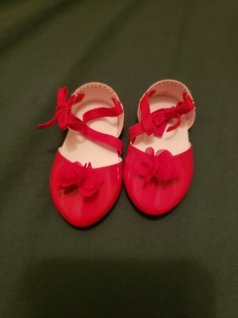 Combined photos/comments from other threads: So sorry for the horrible pictures. There is no sunlight today and the flash from the camera is pretty harsh. .    Here is a close up picture of them. My camera glare is there but matte is a really good description. When I think of metallic I imagine Dorothy's red shoes in the Wizard of Oz   You know what's funny about Samantha's Tea Dress? The real life version was actually a brighter shade of pink! Oh my gosh, that's hilarious! But what about Samantha's Frilly Frock--I mean surely not? The boots? Around the time that dress was released we speculated these 1890 boots might be the inspiration although they were made for women (possibly a more shocking woman as well):  Here's another pair in a closer color: