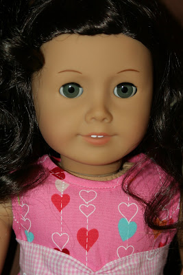 Ruthie is a beautiful doll. I love her curls! She makes a great best friend for Kit. I wish she had gray eyes. her meet outfit is adorable. It looks good with Kit's sweater over top of it.  A-, because her hair can be a pain at times and you have to fuss with it a lot to get it to look good.