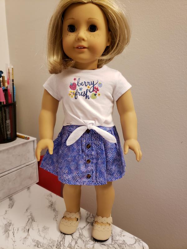 Ohh I love this! I got it to go with the Berry Fresh Tee. Wasn't sure how they would look together, but just needed a bottom to complete the outfit. Picked the skirt over the shorts because the pattern is like something I'd wear. It is $10. The waistband is elastic in the back. It seems a little short, but is closer to a circle skirt, so when the doll sits there's enough fabric to fall between her legs. The fabric is also thin, but not see-through. Nice and moveable and breezy. Highly recommend this one. Glad I bought it.