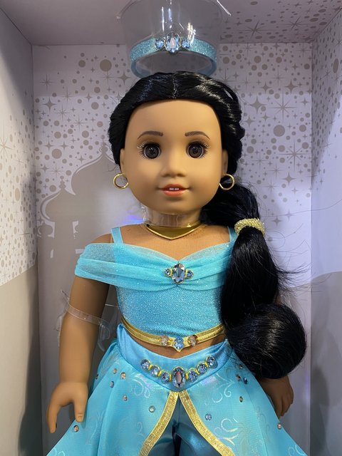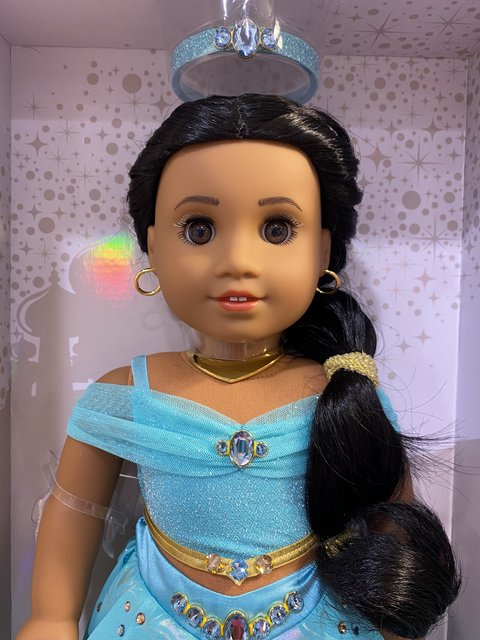 Jasmine is compassionate toward her kingdom and always stands up for what’s right. Celebrate this beloved Disney Princess with this exquisite collector doll, adorned from head to toe in Swarovski® crystals. This limited-edition Disney Princess doll is part of the American Girl® Collector Series. No more than 4,000 American Girl® Disney Princess Jasmine Dolls have been created worldwide.