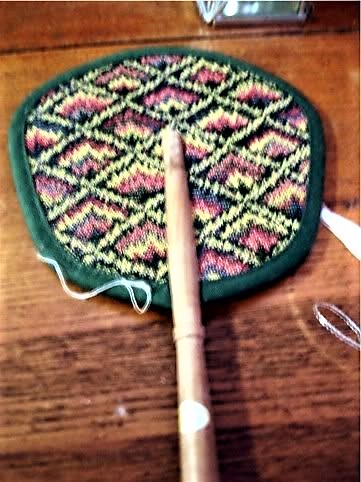 This set was released in 1992 and retired in 2001. it is associated with the book, Changes for Felicity. PC description: On cold days, Felicity played indoors and warmed herself by the parlor fire, using a handheld fire screen to protect her complexion. She amused herself with a jumping jack and a spinning top. When dusk fell, she would light a candle in her lantern and walk to Father's store - always a favorite place to go.Felicity's Winter Entertainments came with a paper jumping jack, a cloth fire screen to protect her face from the fire and a lantern. The jumping jack is made from card stock paper like the paper dolls. It has strings to pull to make it jump. It is rather fragile and if you pull too hard, it could break. The fire screen is made from heavy cloth fabric (brocade?) and has a wooden handle. It's kind of pointless because Felicity can't really hold it on her own. The lantern is made from real metal and has a door that slides open in the back to put the candle in. The windows and candle are plastic. The candle is molded to look like it has been burning and the wax dripping. Grade: A- good quality but not much playability and not central to the story    One side of the lantern has a metal door that slides up and down so you can put the candle inside. The other three sides have plastic glass. There is a wooden top that belongs with this set. I didn't get it in the picture. It kept falling off the table.