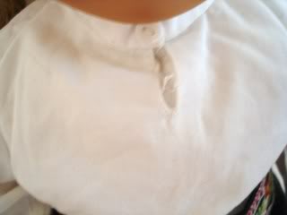 I love the skirt. I like my neutral colours to begin with, and the addition of the flower design at the waist, and a couple of borders of colours at the bottom makes me very happy. The skirt seems to be made of a felt material, which I wish they used a more studier material so the skirt would hold its shape better. A-