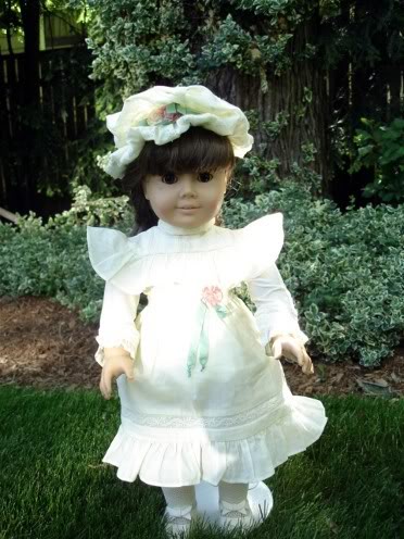 This is among my top three Samantha dresses as far as style and beauty, and thus is owned by Erica. The embroidered ribbon insets and frills make it very detailed, and the silk ribbons are very authentic. This is one of Sam's more 'grown up' dresses. Mine is first edition because I begged for it for Easter :-] .