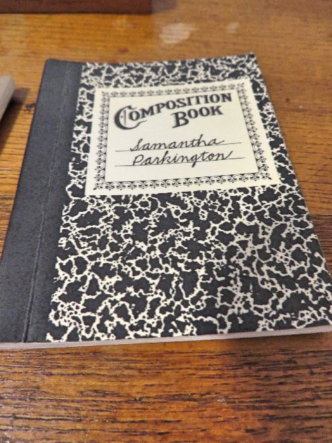 The composition book is a bit of a let down after the Primer and report book because only Samantha's handwriting is on the front of the book. It is possible for you to help Samantha fill her notebook but it is very hard to hold it flat to write. At least you can blame you little doll for the bad handwriting.