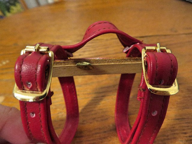 The book strap is made of basic Mattel wood, soft leather and metal buckles. I don't recommended undoing the straps for they get wear easily but you can take the books and pencil case in and out of the bookstrap with out undoing the buckles.