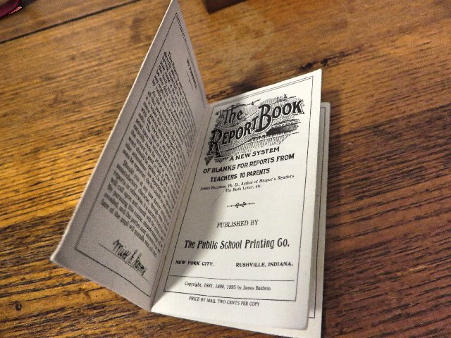 Along with the Primer the report book is fascinating because if you can receive an insight into Samantha's character. Apparently, Samantha is terrible at sewing, drawing and arithmetic but good at spelling, writing and reading. According to the report books, Samantha need to improve controlling her temper but is great at public speaking.