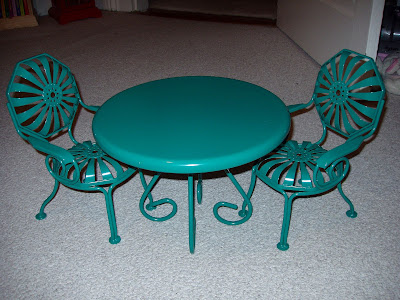 I am so happy that I caved during F/S and got this set. To me, it's definitely outdoor patio/lawn furniture. I'm really happy with both of my AG table and chair sets...Kit's for outside and Molly's original wooden dropleaf one for inside. Kit's would also look really pretty in a sunroom setting, for those of you who have made those amazing AG dollhouses!