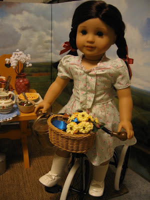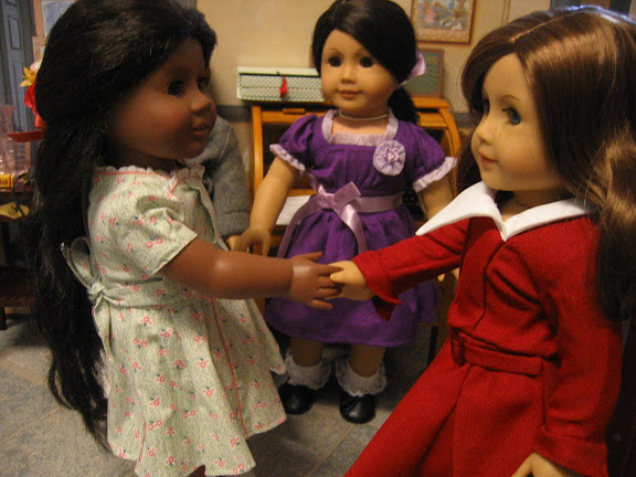 This is one of my top favorites of all AG dresses. I bought it long before I even had a Molly. It looks really nice on many different dolls. It also looks like it would be fun to wear. If I was a little girl, I would want this dress with its swirly skirt. Wheeeeeee!!!!