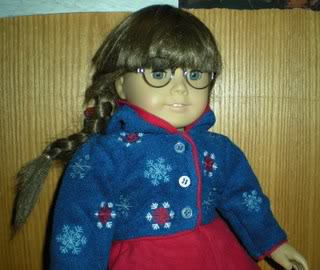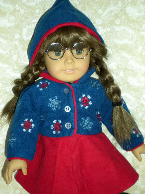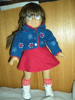 I love this outfit, but my one complaint is if your doll's wearing a shirt, it's hard to button the jacket over it. (See example with my photo of Kailey wearing it.) I love it though. It makes for a great winter outfit. It looks great with Molly's meet beret!