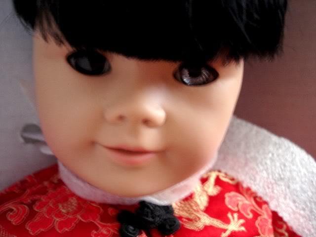 nelliegirl's original AGT 4 (purchased when AGPC first opened) has a very sweet face. Her eyes are very dark and as you can see, she developed silver eye. She now has one Josefina eye and one original eye. The Josefina eye is lighter than her original eye but she likes it because it makes her different from her numerous sisters.  Sweet Myra Wu, the cutest, most rare and valuable of all her sisters. She's an original AGT 4 from the late 90s! Her hair was professionally done at AGPC.   Myra is just so sweet! I love her face.