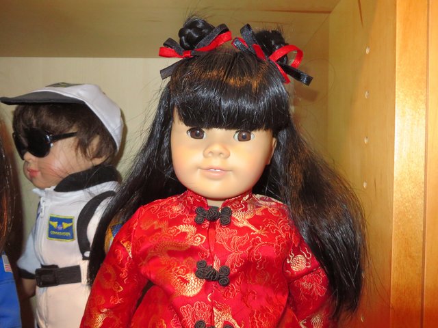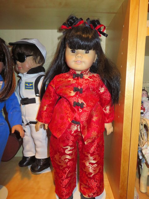 I LOVE this doll! For years, she has not appealed to me. In fact, I didn't really like her. Then, I saw the pictures posted in this thread by FelicityFan85 . . . and I knew that I needed to have one. Thanks to AsianAG , I was even able to buy one right from this forum. She came with the "2008" part number body tag and had what look like the Mattel vinyl parts but the old style pie-shaped banged wig with LOADS of hair. This was her as she came to me:    Her body was very tall, which is (apparently) the norm for this TM doll. My sister actually swapped the cloth body to a doll that we wanted a little taller. This doll is so much cuter in real life, even than in photos! She looks like she is smiling all the time! And, if you don't exactly want an Asian doll, she's great with custom wigs. In fact, what appealed to me about this doll's face was the fact that she looked like Roy Rogers and Dale Evans' little girl, Robin (subject of Dale's best-selling book, "Angel Unaware"). So, I changed her wig to a TM #22 blonde wig to make her into my own version of little Robin! If you're wanting to customize your own #4, here's a link to a lot of photos that I took showing a LOT of different wigs on her: islandshiregazette.blogspot.com/2018/09/trying-different-wigs-on-custom-4.htmlHere is my Robin, and she's adorable. I couldn't be happier with her! This is an adorable doll!