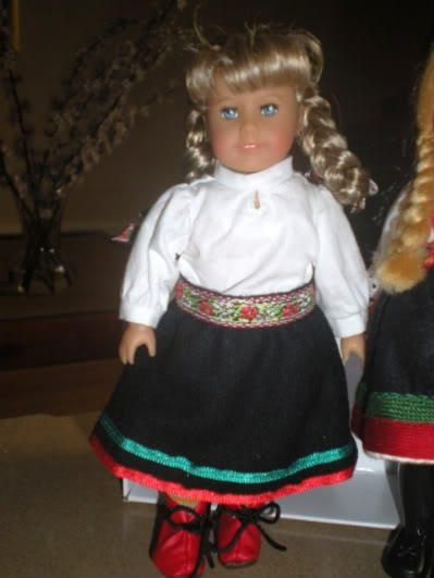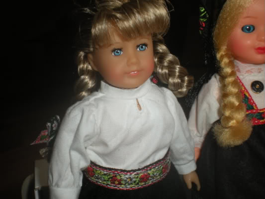 I like seeing all three mini Kirsten's together. Here is a photo of mine that arrived today. Now I am itching to try and make her winter woolens. I think AG did a great job on this mini doll. The clothing fits better than the regular mini Kirsten, especially the sleeves. I just wish her bangs were a little better behaved. They are much better than the old pie bangs, but still a little unruly and maybe a tad long. I give her an A for this reason instead of an A+.