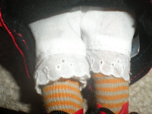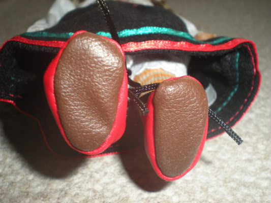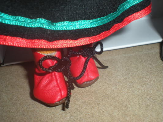 The pantaloons and socks are identical to the current regular mini. The red boots are the same as the regular's boots, only red on top with black laces instead of brown all over.
