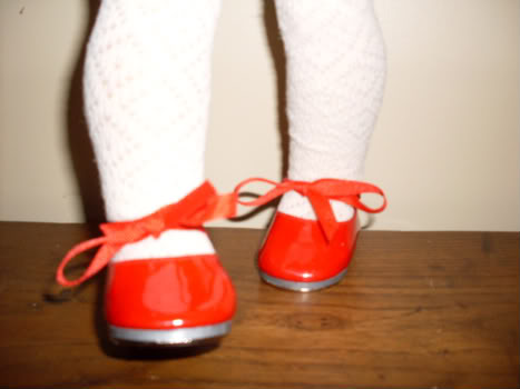I got this set from AGPC a little over a year ago and I thinks it's a wonderful set. When I came home from AGPC, I put it on one of my dolls immediately and thought it was wonderful. I think all of the pieces in the set are just wonderful, but from what I can remember, the shoes were a bit difficult to get on. I love this set because of the color coordination between the dress, the shoes and the crown. I just love the red tap shoes! I sort of consider this outfit to be Marisol's, since she is the dancing girl in this house, but she loves to share with her sisters. I give this outfit an A+.