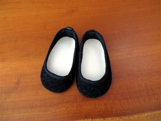 The velvet shoes get a lot of use around here. Samantha and Molly have both worn them with their dresses. They're a bit different than the shoes my stepsister's #4 came with in her First Day Meet Outfit. Those shoes, at least the ones I have, were more silky than velvety.