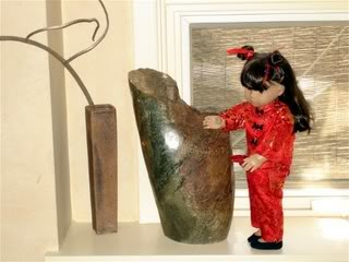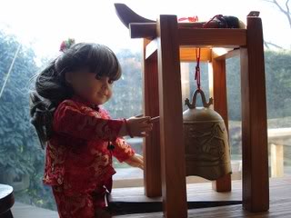I have the Pleasant Company version of this outfit, and it's a bit big on my pre-Mattel #4. I have her standing sideways so she doesn't look so wide. Mine didn't include the ribbons or hair clip. I do have the gong and firecrackers, but my poor #4 can't hold them up. Needs limb tightening. ~Mod edit to remove dead image link~